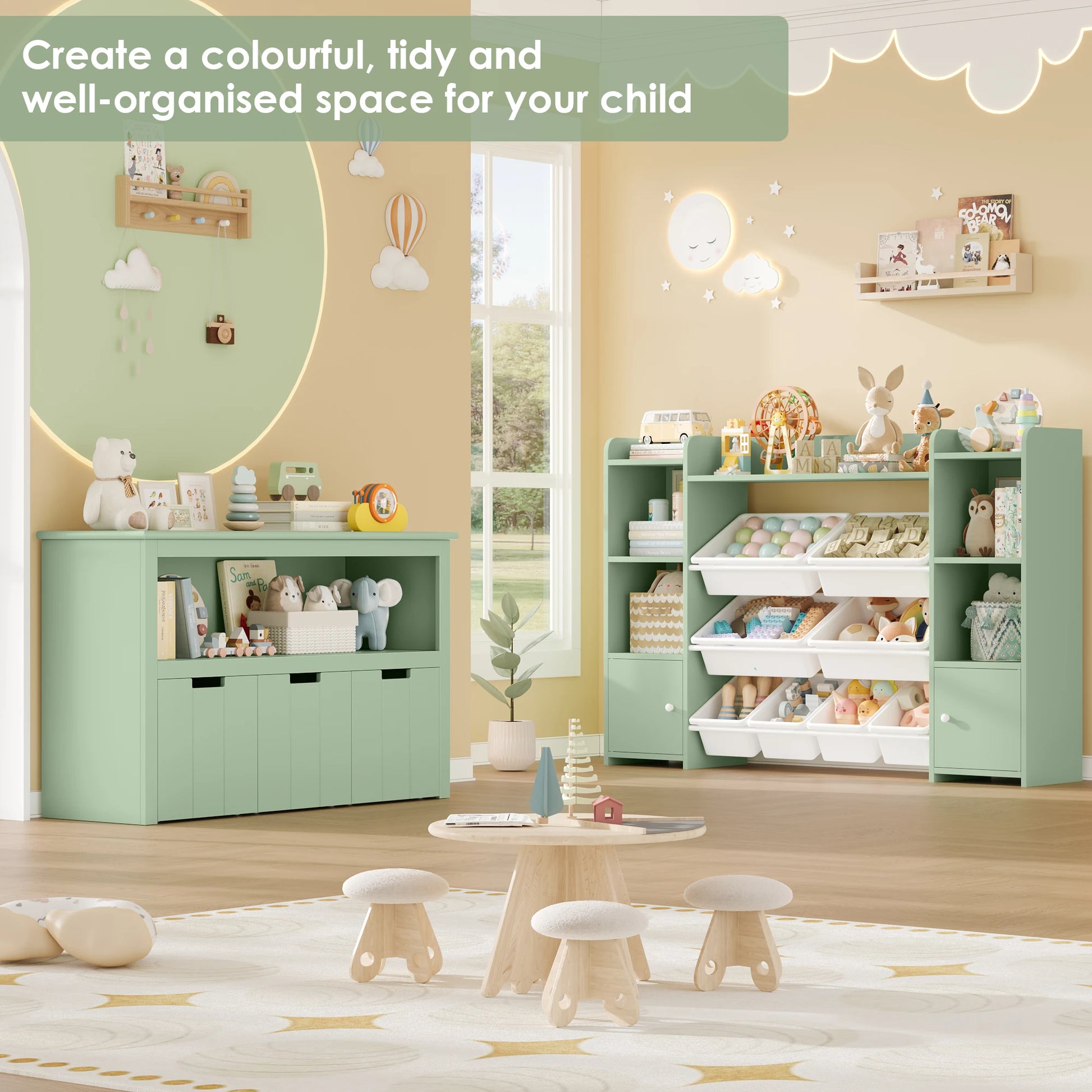 - Viacúčelové úložisko: Ideálne na hračky, oblečenie, bábiky a knihy — udržujte často používané predmety na dosah.