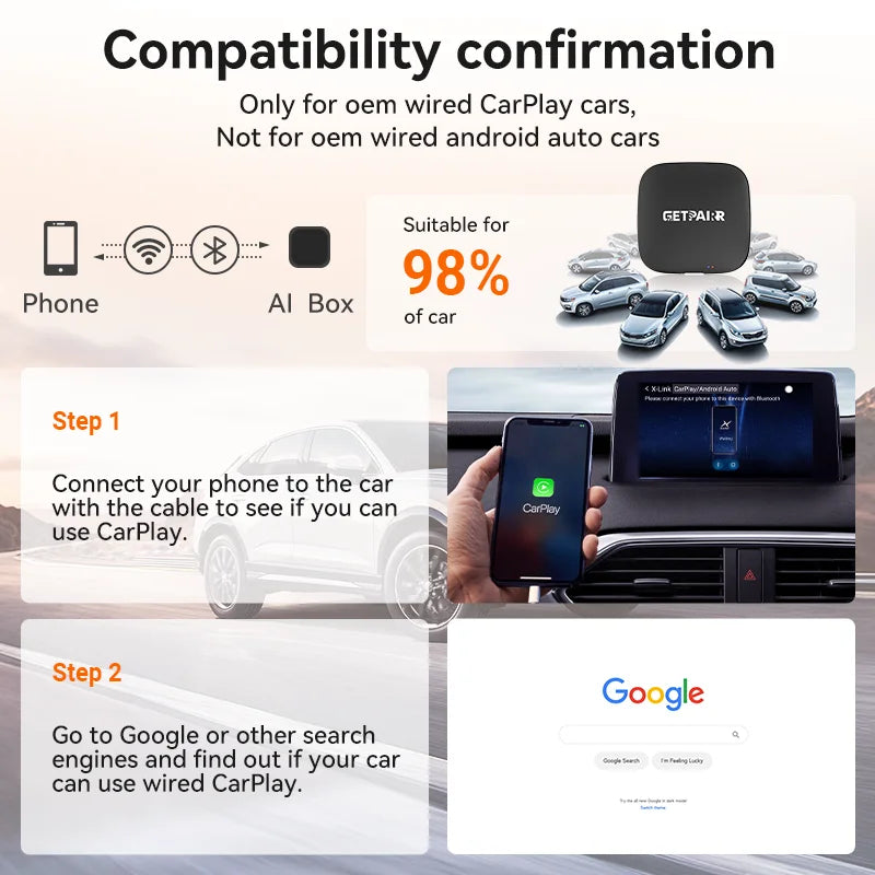 Vylepšite svoj zážitok v aute s Android 13 CarPlay AI Box, výkonným riešením GetPairr P1, ktoré prináša bezdrôtovú CarPlay a Android Auto do vozidiel s továrensky zapojenou CarPlay. S Android 13.0, táto kompaktná AI krabička poskytuje rýchle bootovacie časy, plynulú navigáciu a zabudované možnosti streamovania, takže si môžete užiť Netflix, YouTube a TikTok na ceste. Podporuje 4GB alebo 8GB RAM spárované s 64GB/128GB úložiskom, s rozšíriteľným úložiskom až do 256GB cez SD kartu (karta nie je súčasťou). S podporou dvojitého systému a širokou kompatibilitou áut získate bezproblémový, kino-podobný zážitok bez nutnosti výmeny továrenského autorádia.