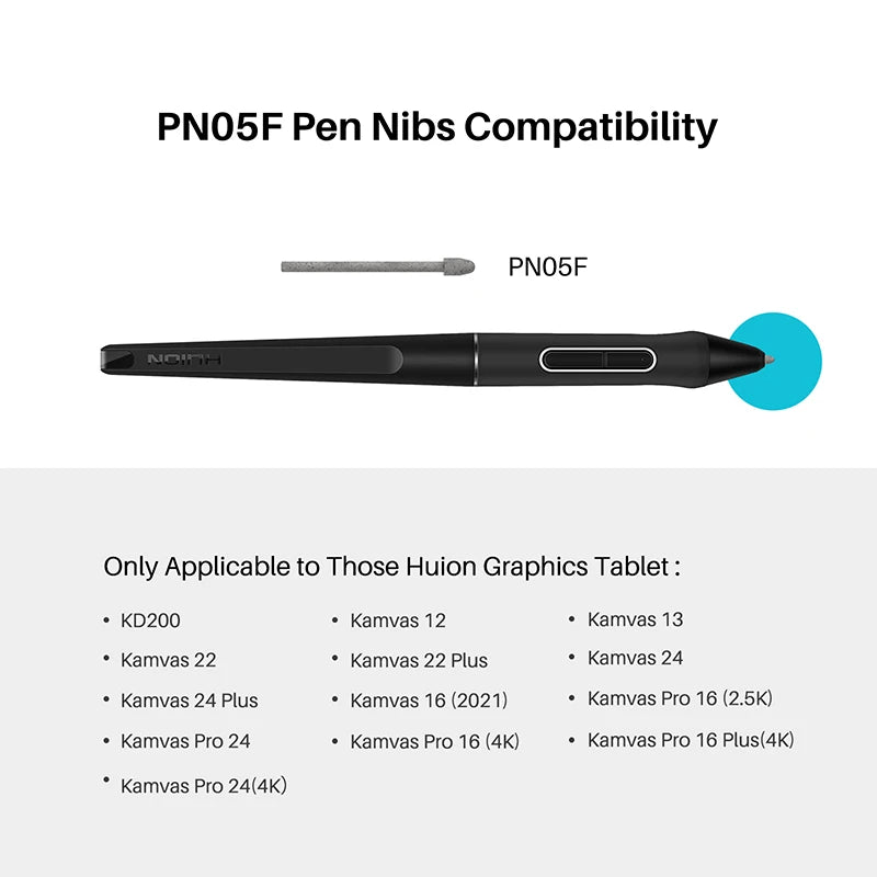 Vyrobené z filcu, hroty PN05F výrazne zlepšujú trenie medzi hrotom a povrchom, čo pomáha znižovať oslnenie na obrazovke a obnovuje prirodzený pocit kreslenia podobný papiera na podporovaných tabletoch Huion.