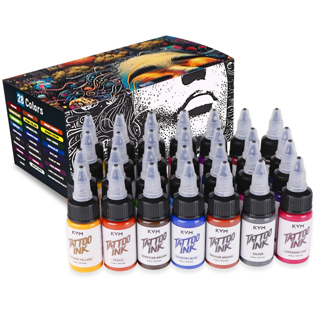 - 28 fliaš × 0.5 oz tetovacieho atramentu (28 farieb v krabičke)