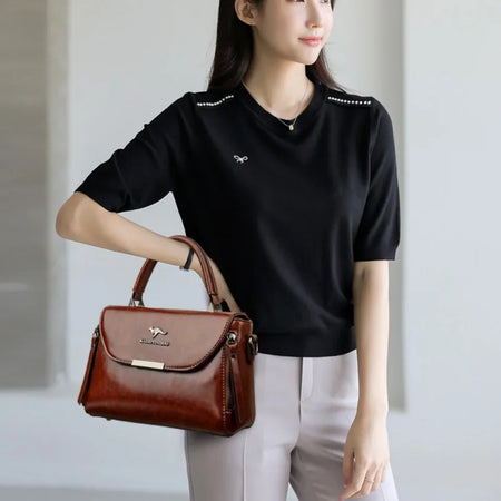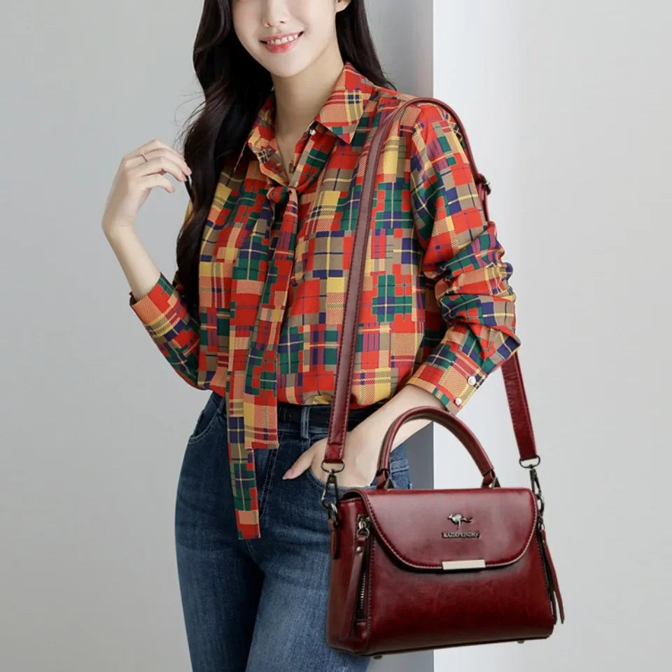 Luxusná kožená dámska kabelka s crossbody a horným uchom, vysokokvalitná príležitostná messenger taška na každodenné použitie