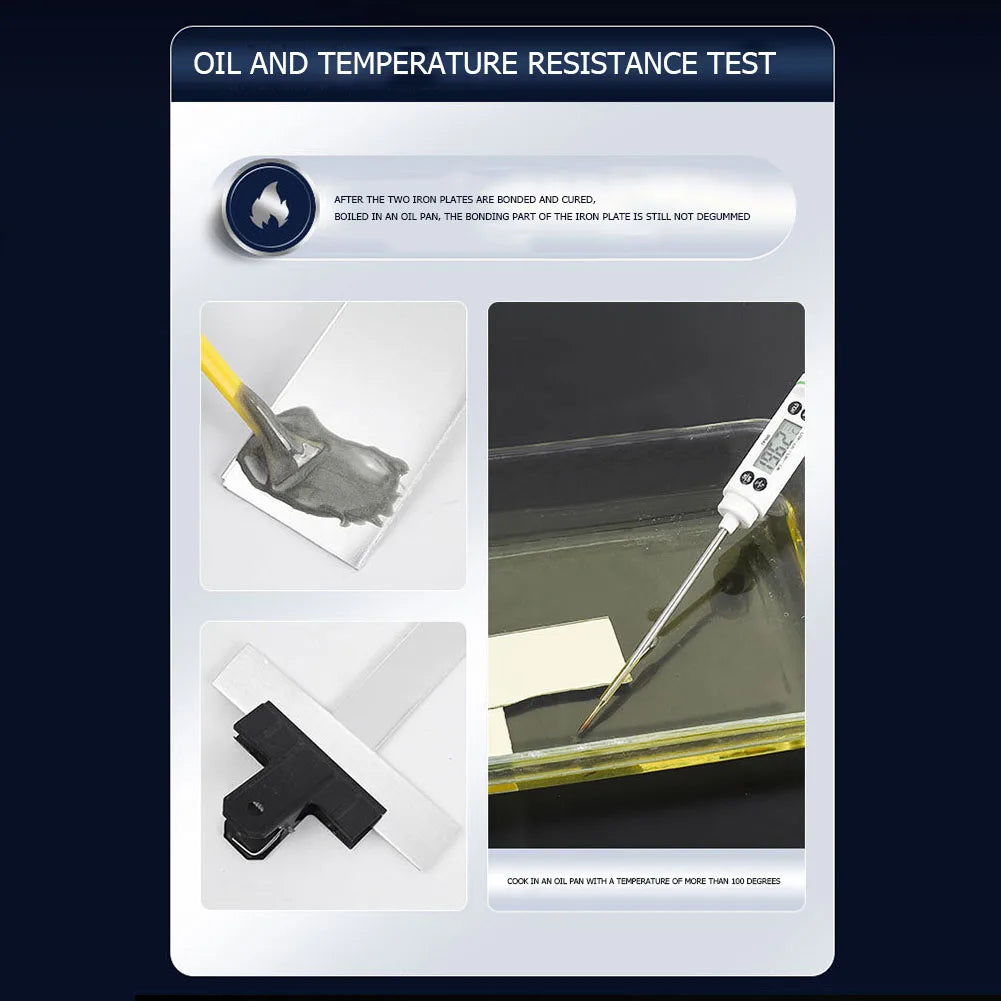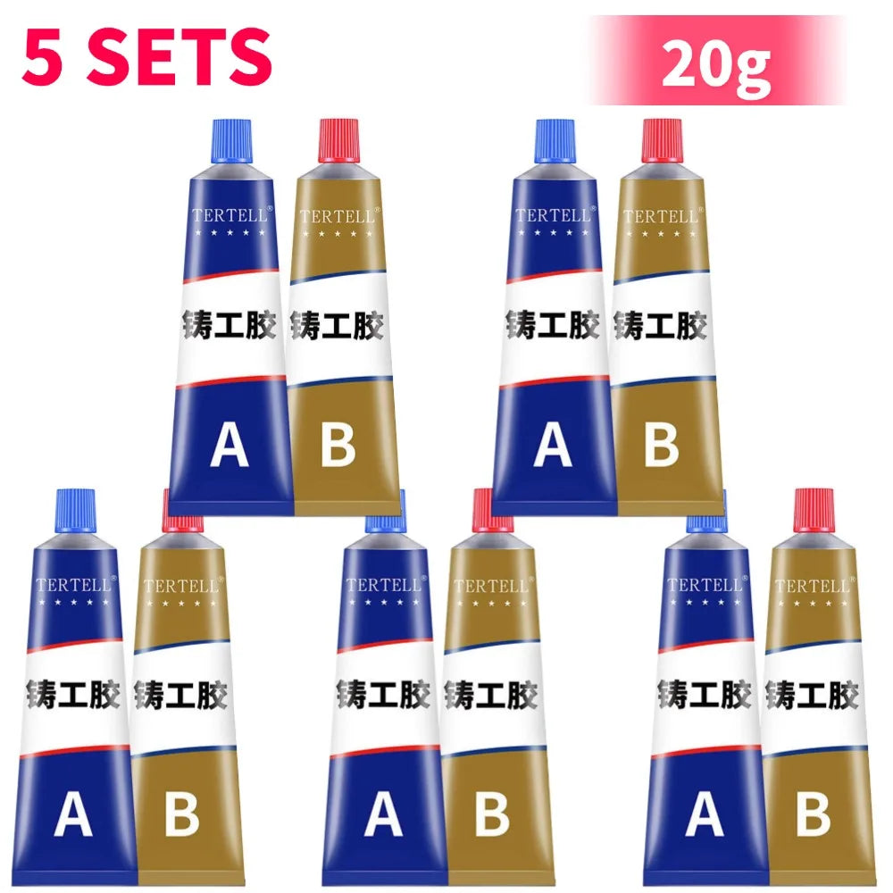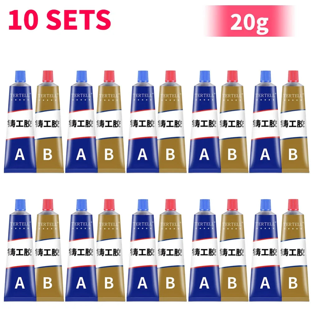 Silné kovové lepidlo AB studená zváračka odolné voči teplu je robustné dvojzložkové epoxidové lepidlo navrhnuté na trvalé opravy kovov a spojovanie viacerých materiálov. Toto AB lepidlo poskytuje spoľahlivú pevnosť pre kovy, keramiky, plasty a drevo, čo ho robí ideálnym pre automobilové diely, odliatky, chladiče a priemyselné zariadenia. Jeho užívateľsky prívetivá formula podporuje rýchle opravy a profesionálne výsledky priamo vo vašej dielni alebo garáži.