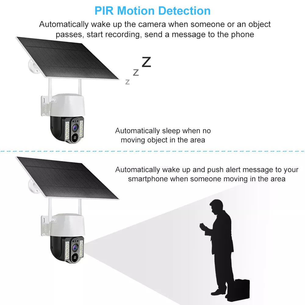 **Upozornenie:** Pred zakúpením si stiahnite PDF príručku na inštaláciu kamery a používateľskú príručku, aby ste zabezpečili optimálne používanie. Pre nepretržité monitorovanie umiestnite kameru na miesto s dostatočným slnečným osvetlením pre efektívne solárne nabíjanie. Užite si pokoj s pokročilými funkciami, ako je sledovanie pohybu ľudí a dvojcestný audio, čo robí túto kameru spoľahlivou voľbou pre vaše bezpečnostné potreby.