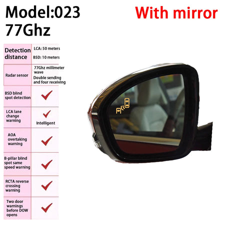 Dve bežné možnosti zobrazenia vám poskytujú flexibilnú integráciu. Môžete si vybrať verziu s objektívom a svetelným signálom na objektíve, alebo zvoliť zobrazenie v kabíne, ktoré zobrazuje varovania vo vnútri trojuholníkového okna. Systém podporuje asistenciu pri zmene pruhu LCA, monitorovanie mŕtveho uhla BSD, aktívne varovanie pri predbiehaní AOA a varovanie pri cúvaní RCTA, s voliteľnými varovaniami DOW pri otváraní dverí, aby sa zvýšila situational awareness.