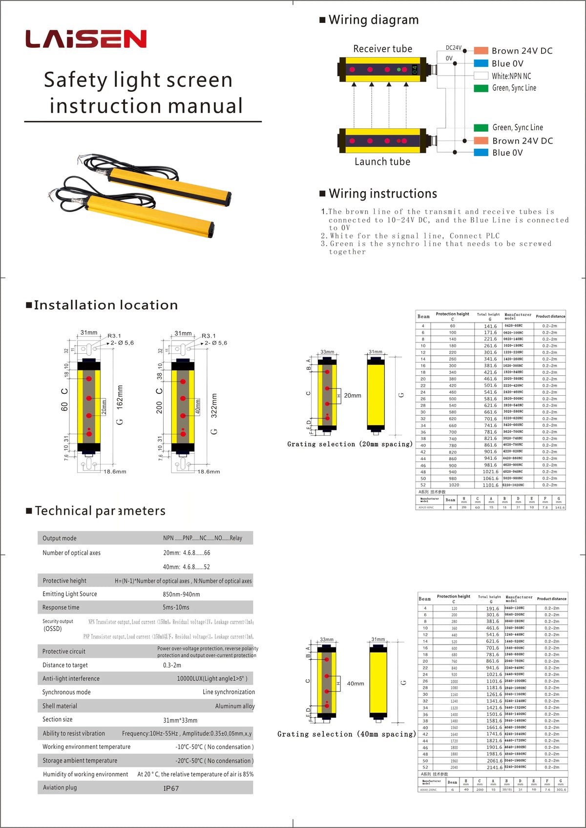 10-Beam Laser Sensor With Safety Grating – 3m Range
