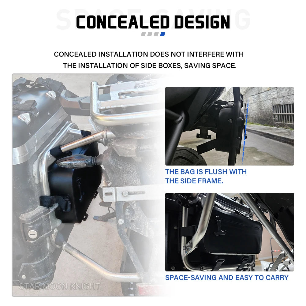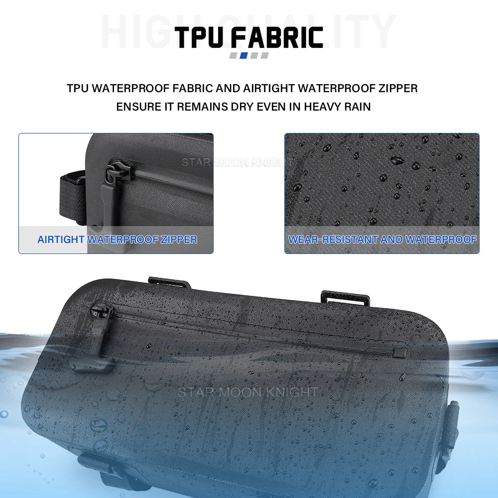- 1 x BMW Yamaha Honda združljiva torba za stranski okvir motocikla (Popolnoma vodoodporna TPU torba za orodje, univerzalno prileganje) – kapaciteta 2,5 L