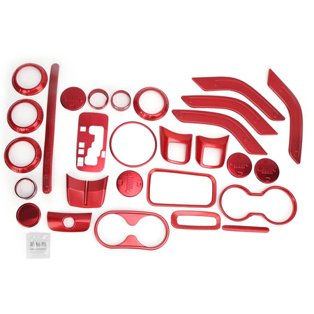 - Obsežen 28-delni komplet pokriva ključna področja, vključno z ročaji vrat, zračnimi izhodi, oblogami volana, držali za skodelice, oblogami ročice za prestavljanje in še več, kar celotni kabini daje usklajen, osvežen videz na modelih JK/JKU od 2011 do 2018.