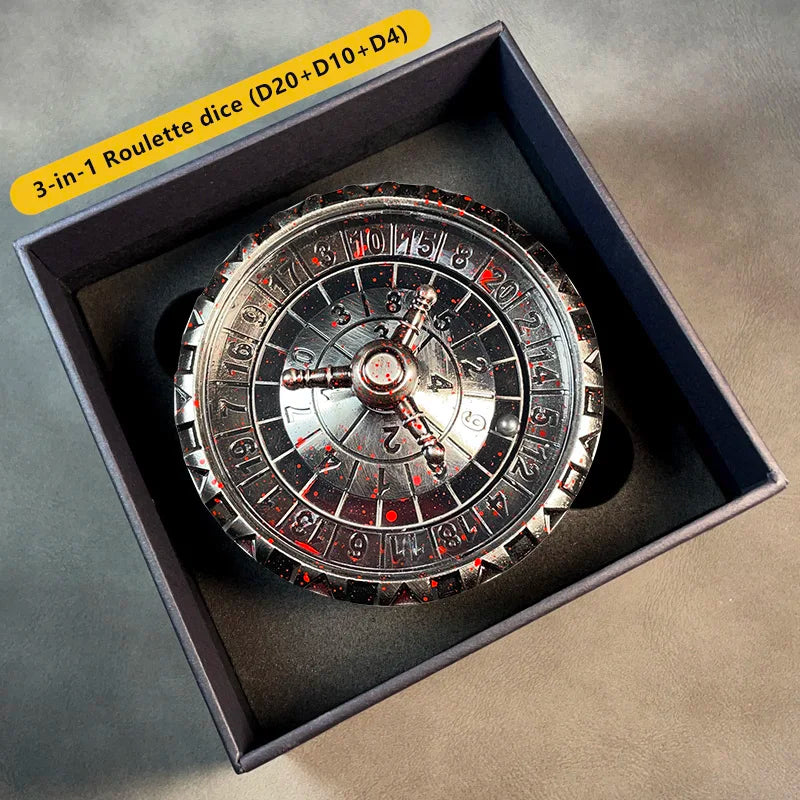Spoznajte 3-v-1 kovinski set kock YASEKVNZN — vrhunski, robusten dodatek, zasnovan za resne igralce namiznih iger. Ta kompakten set združuje dva paketa kock v slogu rulete v enega, ki vključuje trio D20, D10, D4 in trio D12, D8, D6. Izdelane iz trdnega kovinskega materiala, te vrteče se kocke zagotavljajo zadovoljivo težo in gladko vrtenje na kateri koli ravni površini, kar dodaja otipno, na ruleto navdihnjeno noto vašim sejmom. Popolne za DND RPG in Cthulhu Mythos avanture, prinašajo hitre, poštene rezultate z vizualno privlačnim mehanizmom, ki izboljšuje potopitev in tempo v vsaki kampanji.