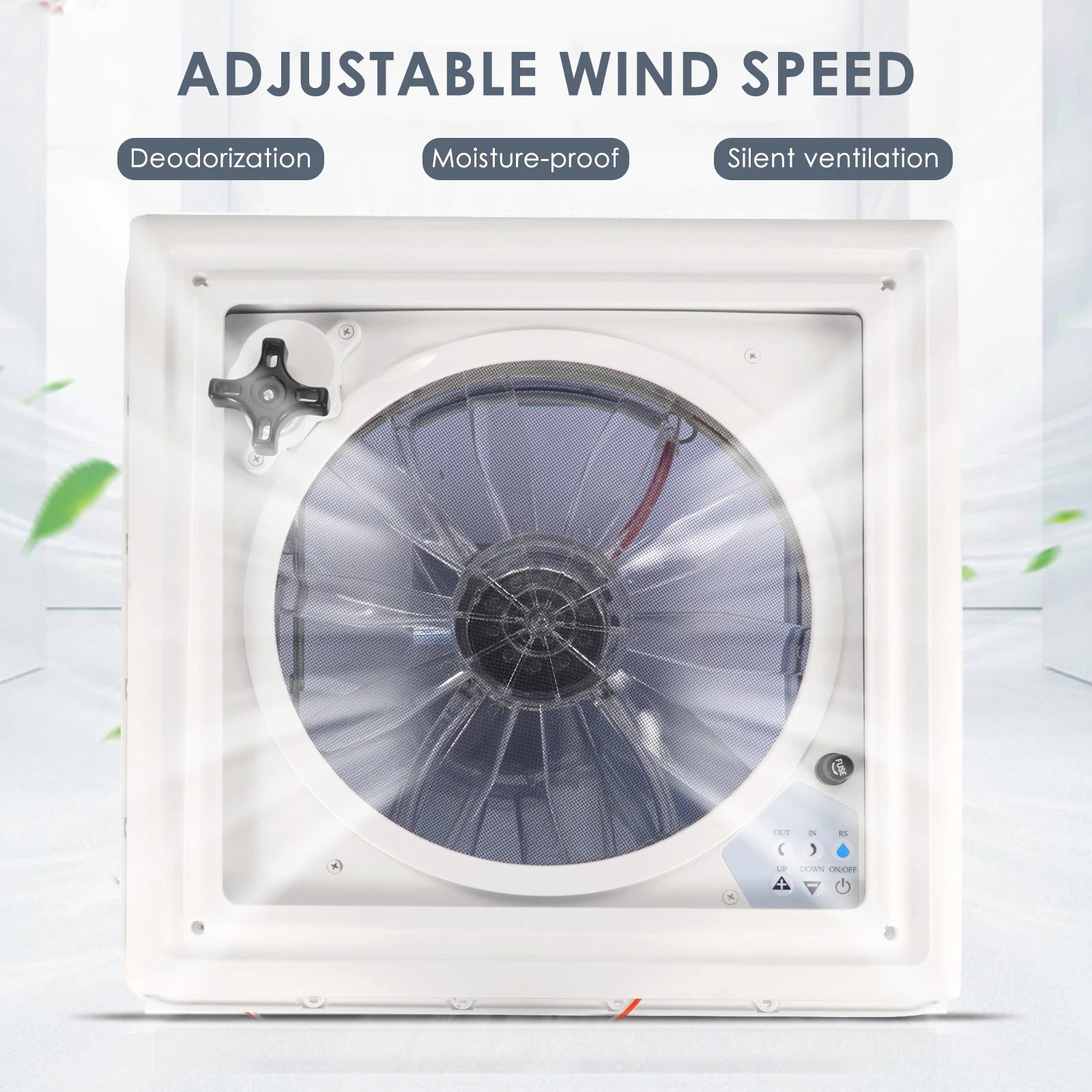 Trispeedski RV strešni ventil z dežnim senzorjem in 12V daljinskim upravljalnikom je napredna rešitev za prezračevanje za avtodome in druga rekreacijska vozila. Ta električni strešni ventil zagotavlja zanesljiv pretok zraka s 3 hitrostmi in obratnim pretokom zraka, hitro prezračuje zastareli zrak in vonjave. Ima dežni senzor, ki samodejno zapre zgornji pokrov, ko zazna dež, ter vgrajen električni dvigalec za enostavno prilagajanje višine. 12V motor je zasnovan za baterije RV in ga je mogoče upravljati preko priloženega daljinskega upravljalnika, kar vam omogoča prilagajanje hitrosti, smeri in dvigovanja iz notranjosti vašega vozila. Ustreza odprtinam za strešna okna velikosti 40 x 40 cm (15.7 x 15.7 palcev) in podpira debelino strehe od 25 do 55 mm. 5A varovalka s počasnim taljenjem ščiti pred prenapolnjenjem, kar pomaga preprečiti kratkostične in podaljšati življenjsko dobo naprave. Ta kompakten, trpežen ventil je zasnovan za celoletno uporabo in pomaga ohranjati vaš RV hladen, svež in udoben tudi med kuhanjem, tuširanjem ali namestitvijo hišnih ljubljenčkov.