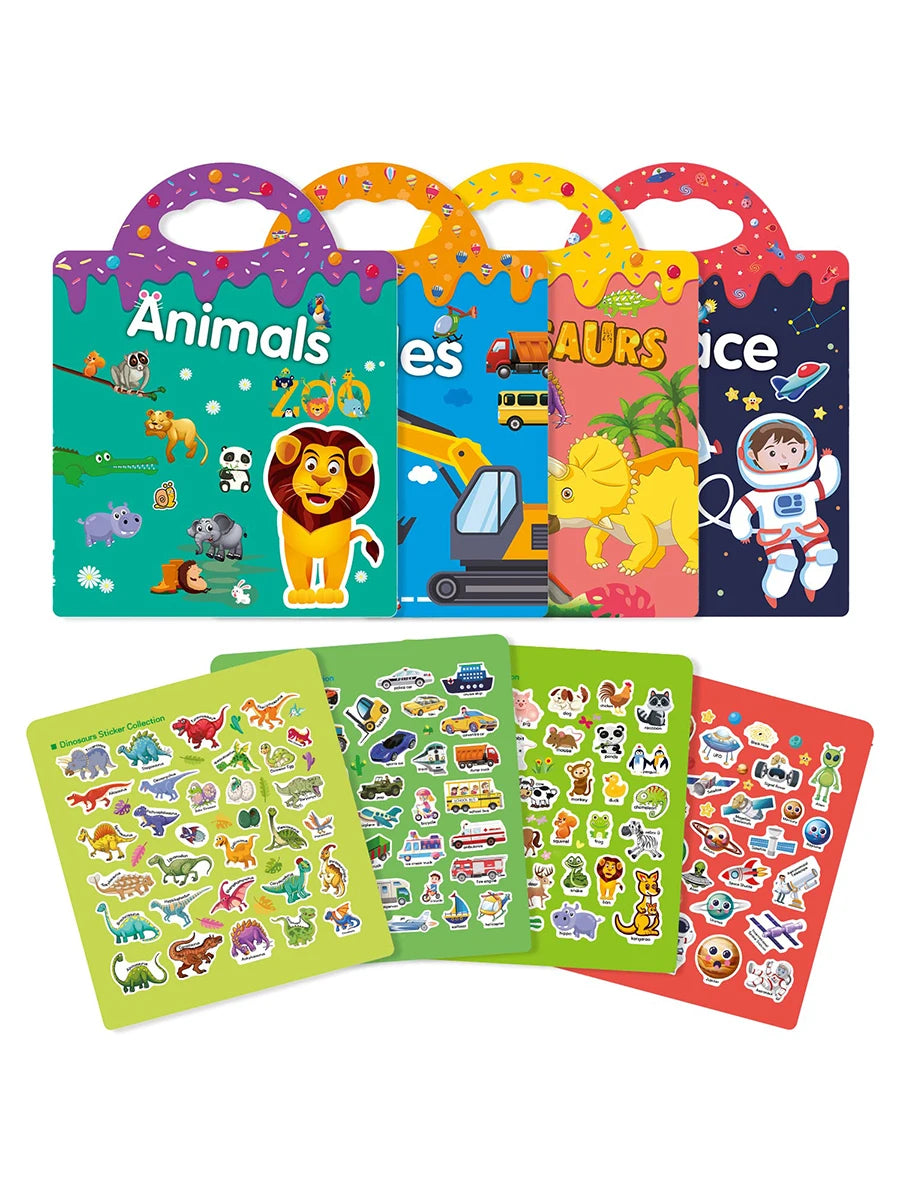 4 Pack Ponovno uporabne Nalepke Knjige 3D Jasni Živali Vozila