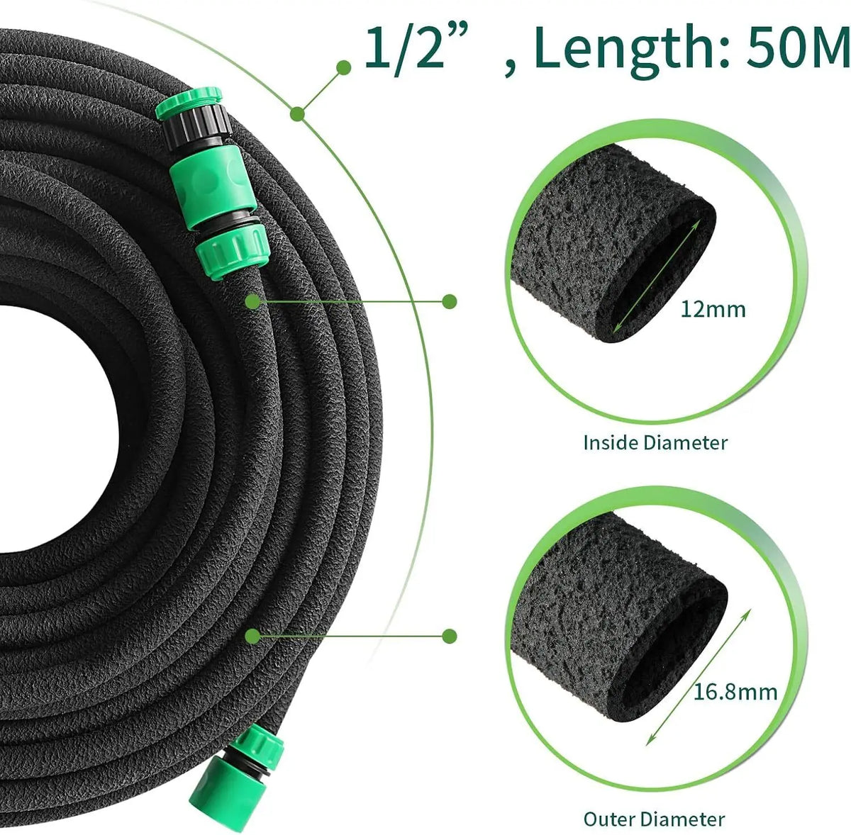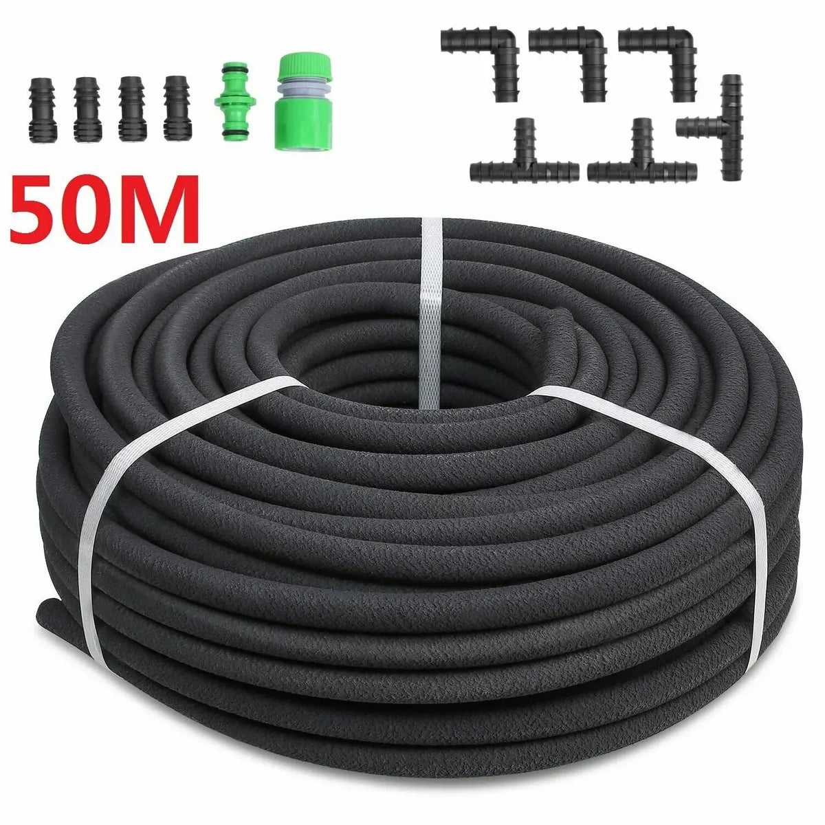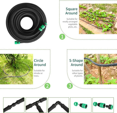 - Prilagodljiv in fleksibilen: Vključuje 50 m 1/2 palčne cevi ter celoten set priključkov in končnih čepov, tako da jo lahko odrežete ali podaljšate, da ustreza različnim oblikam in terenom vrta.