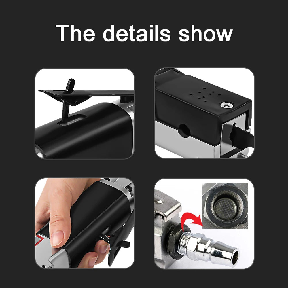 Predstavljamo 9000bpm pnevmatsko reciprocirajočo žago 90 Psi Auto Metal Cutter — kompakten, visoko zmogljiv pripomoček, zasnovan za profesionalno rezanje kovin. Namenjena za delo na karoserijah avtomobilov, odlično reže avtomobilske pločevine, blatnike, odbijače in tanke kovine z hitrostjo in natančnostjo. S 10 mm hodom in do 9.000 udarci na minuto lahko hitreje režete kovino, pri tem pa ohranjate nadzor in zmanjšujete utrujenost.