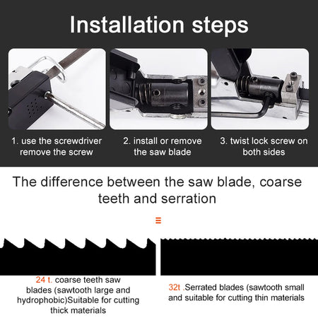 - Vsestranost rezila: uporablja 24T ali 32T rezila (oba vključena) za različne materiale in sloge rezanja.