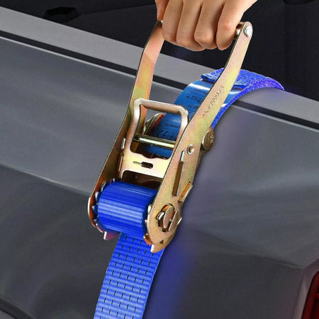 Varnostni, zanesljivi in zasnovani za težke obremenitve, 9m X 50mm Double J Hook Ratchet Straps zagotavljajo zanesljivo vezavo za tovornjake, motocikle in tovor. Z impresivno trdnostjo 11,000 lbs so ti zategovalni trakovi zasnovani tako, da vaš tovor ostane trdno na mestu med potovanjem. Vsak trak meri 27 čevljev dolžine in 2 palca širine, kar zagotavlja dovolj dolžine in širine za različne potrebe po varovanju. Sistem združuje robusten kovinski napenjalnik z UV-odpornim poliester trakom in dvojne J kljuke, ki se pritrjujejo na okvirje prikolic, sidrne točke, D-obroče ali O-obroče brez praskanja površin. Enostaven mehanizem za sproščanje zategovanja vam omogoča hitro zategovanje in prav tako enostavno sproščanje, medtem ko pocinkani jekleni sestavni deli povečujejo trajnost za ponavljajočo se uporabo. Idealni za prevoz tovora, prevoz kajakov, varovanje polic in zunanje postavitve, so ti trakovi vsestranska rešitev za varno pritrjevanje tovora. Vsa elektronska in mehanska oprema, naprave in stroji, ki jih prodaja InterCyprus državam EU, so CE certificirani in imajo dvoletnjo garancijo. Na intercyprus.com od leta 2002 — zaupanja vredni za kakovost in zanesljivost.