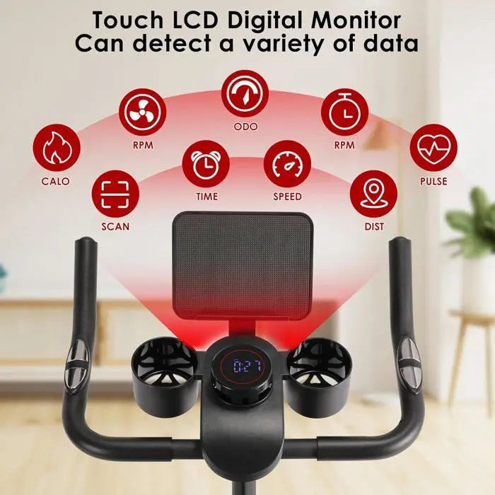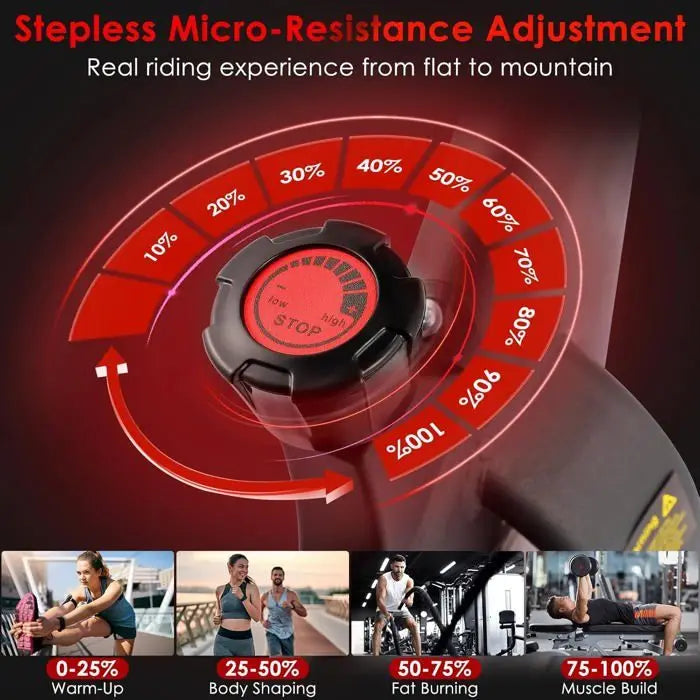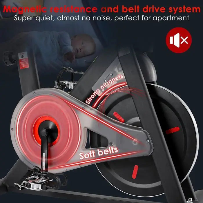 - Tiho delovanje in gladko vrtenje pedal: sistem magnetnega upora odpravlja hrup tradicionalnih jermenskih pogonov, kar ga naredi idealnega za skupne prostore in vadbe pozno zvečer.