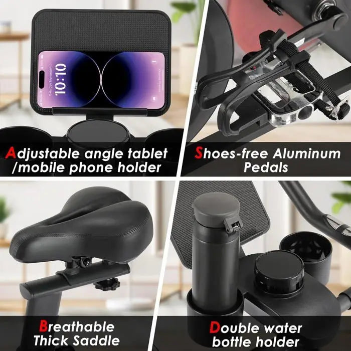 Izkušajte tiho, učinkovito kardio vadbo z nastavljivim magnetnim odporom na kolesu za vadbo Ergometer, zasnovanim za podporo do 120 kg. To notranje fitnes kolo združuje gladek sistem magnetnega upora z robustnim železnim okvirjem za stabilno in udobno vadbo doma ali v telovadnici. Uživajte v nizki hrupnosti, natančnem nadzoru upora in ergonomskih prilagoditvah, ki ustrezajo širokemu spektru uporabnikov.