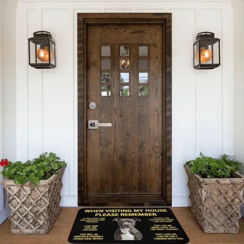 Spoznajte American Pit Bull Terrier Doormat Non Slip Waterproof — stilna, trpežna dobrodošlica, zasnovana za zaščito vaših tal, hkrati pa dodaja pridih osebnosti vsakemu vhodu. Zasnovana za vsakodnevno uporabo, ta preproga ujame umazanijo in vlago, kar vam pomaga ohranjati notranje prostore čistejše in sveže. Njena tiskana zasnova ima drzen, moden videz, ki dopolnjuje sodobno domačo dekoracijo, medtem ko nedrseča PVC podlaga zagotavlja zanesljiv oprijem na kateri koli površini. Narejena iz 100% poliestra z trdno podlago, je ta preproga zasnovana za obvladovanje zaposlenih gospodinjstev, hišnih ljubljenčkov in pogostega prometa.