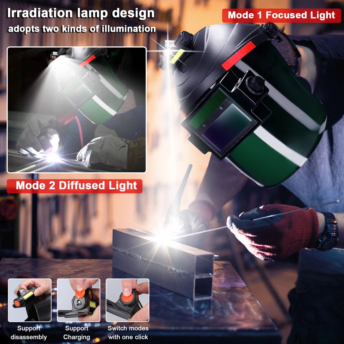 Premium konstrukcija in vizualno polje prave barve dodatno izboljšata vašo natančnost varjenja. Z lahkim občutkom in ergonomsko prileganje lahko delate bolj učinkovito z manj utrujenosti oči in boljšo kontrolo nad vašimi varitvami.
