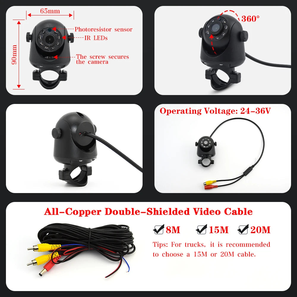 Izkušnje s jasnejšo ozaveščenostjo na cesti z Autotop 1080P AHD sprednjo in zadnjo kamero. Ta žična kamera za vzvratno vožnjo zagotavlja ostre 1080P AHD videoposnetke s širokega 160° vidnega kota, kar vam pomaga pri parkiranju, manevriranju in ohranjanju zavedanja o okolici. Plastična lupina kamere in plastična + steklena leča sta zasnovani za vzdržljivost pri vsakodnevni vožnji, medtem ko vgrajene vodilne črte nudijo ocene razdalje za poenostavitev parkiranja v tesnih prostorih. Zasnovana za brezhibno integracijo z večino monitorjev preko žične povezave, je to praktična nadgradnja za varnejšo vožnjo po mestih in vikend izlete.