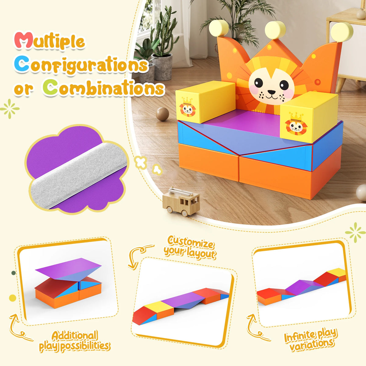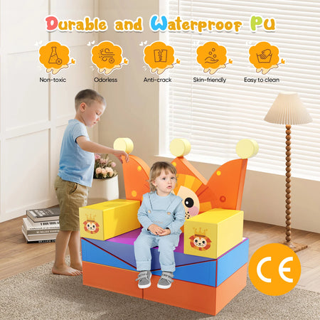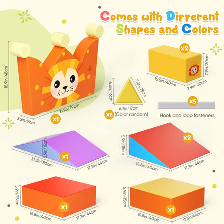 Predstavljamo Lion Kingdom, komplet blokov za plezanje iz pene s temo levov, ki raste z vašim otrokom. Ta vsestranski komplet spodbuja motorične spretnosti, ravnotežje in prostorsko zavedanje ter spodbuja domišljijo. Ko se ne pleza, se bloki spremenijo v udoben kavč v obliki leva za branje, sprostitev ali igro, kar vsak prostor spremeni v igriv svet avanture.