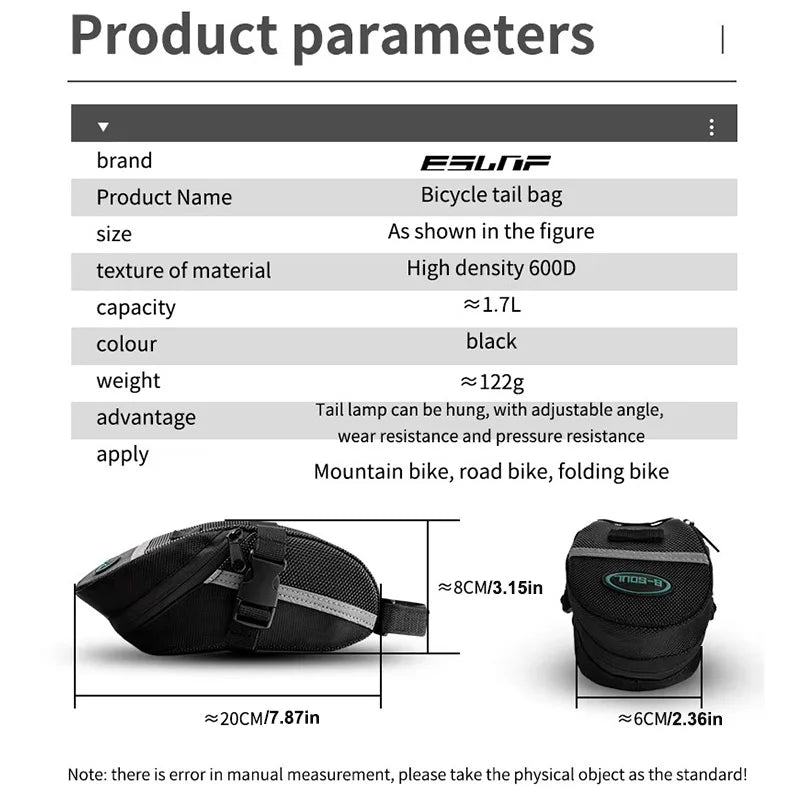- 1 x Lightweight 600D Tail Bag za MTB in cestna kolesa