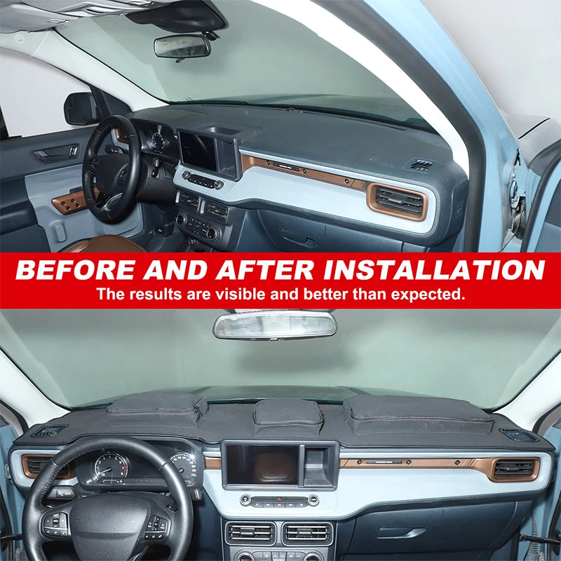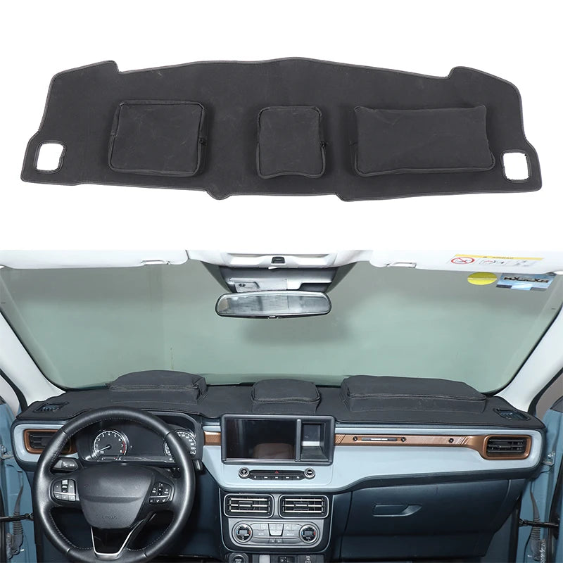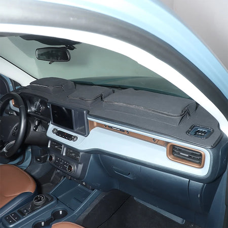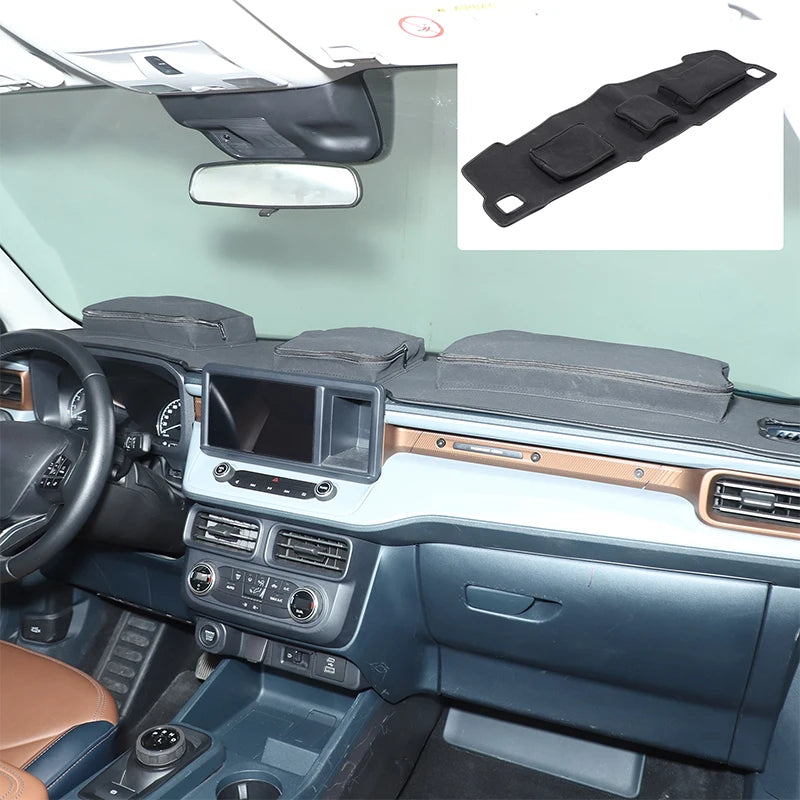 Črna UV zaščitna podloga za Ford Maverick 2022+ (zaščita armaturne plošče) — praktičen dodatek za notranje predelave, zasnovan za zaščito armaturne plošče vašega Ford Maverick pred bleščanjem sonca, UV poškodbami in vročino. Ta enodelna črna podloga se tesno prilega kot notranja obloga za Ford Maverick 2022+ in pomaga ohranjati videz kabine, hkrati pa omogoča enostaven dostop do vsakodnevnih potrebščin.