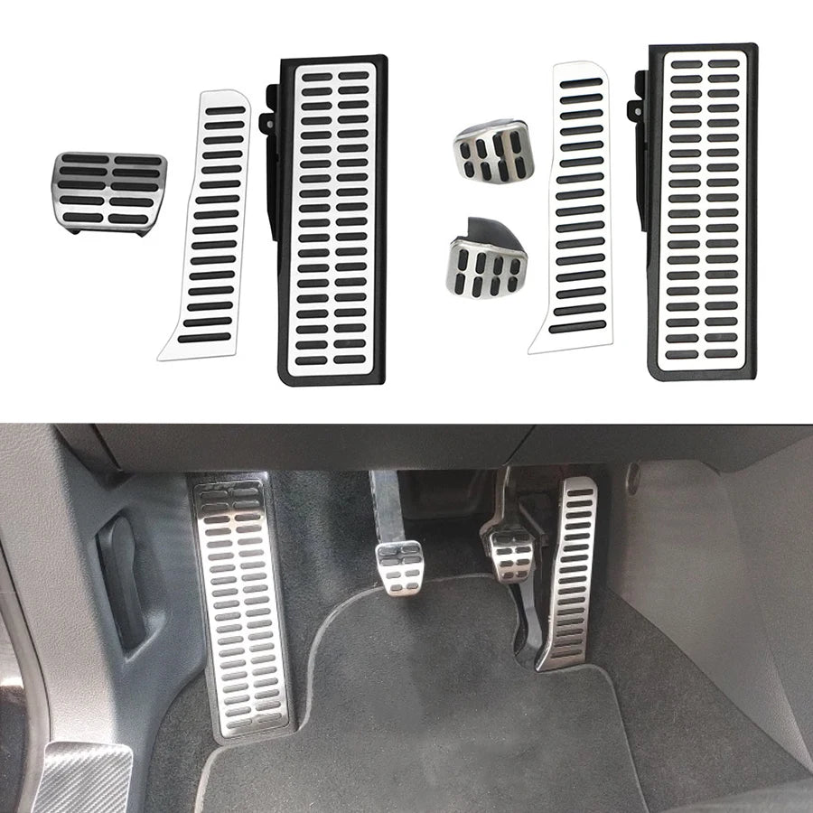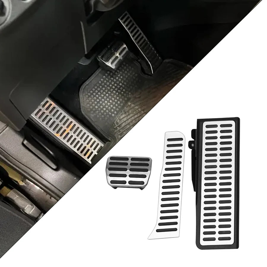 Volkswagen Golf GTI Pokrov Pedala — eleganten nadgradnja izdelana iz nerjavečega jekla in trpežne plastike, zasnovana za izboljšanje notranjosti vašega Golf GTI s športnim črnim zaključkom in srebrnimi poudarki. Ta pokrov pedala nudi vrhunski, dirkaški videz, hkrati pa ohranja oprijem in nadzor med vsakodnevno vožnjo.