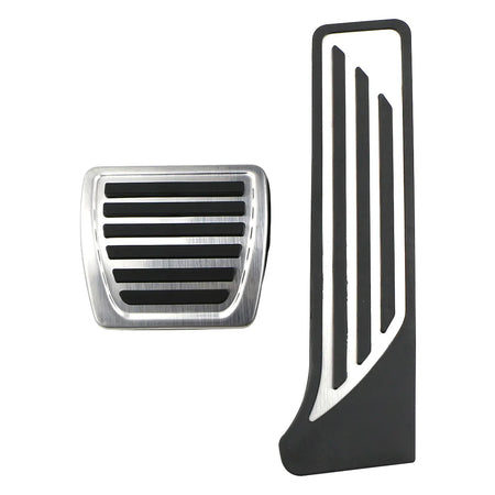Namestitev je preprosta: za pokrov plinastega pedala ga preprosto postavite čez originalni plinski pedal. Za pokrov zavornega pedala odstranite gumo z originalnega zavornega pedala, nato pa namestite pokrov čez kovinski pedal. To je hitro nadgradnjo, ki jo lahko dokončate doma brez posebnih orodij.