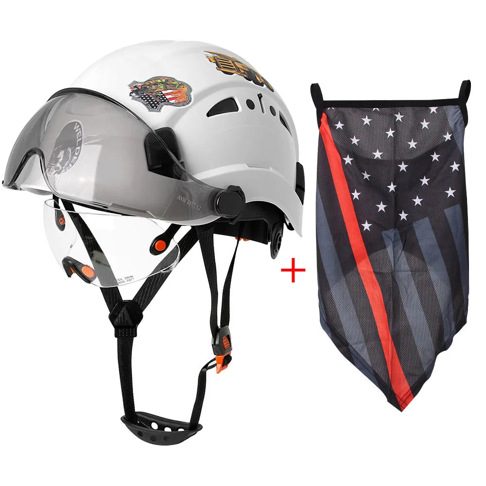 4AQM0226 Gradbena čelada z očali – Dvojna zaščita — Trdna varnostna čelada z vgrajenimi dvojimi očali, zasnovana za zaščito vaše glave in oči na gradbiščih, v tovarnah, na prostem, pri reševalnih akcijah in pri vožnji. Lahka, odporna na udarce in pripravljena na intenzivno uporabo.