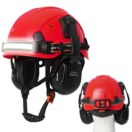 SF06/CR08 Varnostna kapa – Z LED svetilko in ušesnimi zaščitami — robustna, visoko udarna ABS varnostna kapa, zasnovana za združevanje zaščite glave, zmanjšanja hrupa in osvetlitve brez rok za gradbene, industrijske in zunanje reševalne naloge.