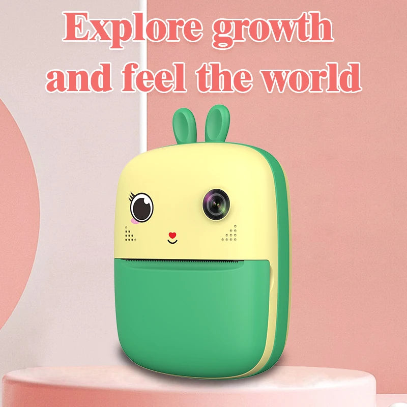 Otroška instantna digitalna kamera – Instantni foto odtisi — Mini kamera z motivom zajca, zasnovana za majhne otroke in malčke, ki obožujejo barvite, takojšnje fotografije. Kompaktna, zabavna in enostavna za uporabo z 200 DPI barvnim prikazom slike in polnilno baterijo 1800mAh.