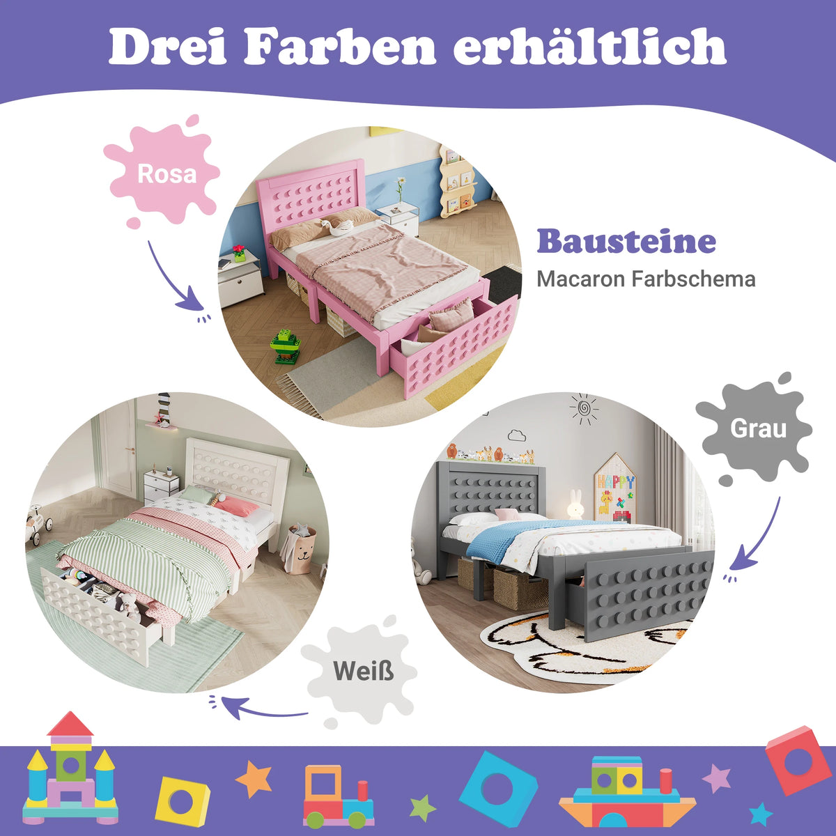 Roza Masivno Leseno Blokovno Oblikovanje Otroška Postelja Z Predali 90x200