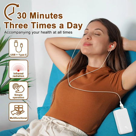Odkrijte Ear Laser LLLT Irradiator 650nm za rinitis in tinitus podjetja Choice – kompakten, enostaven za uporabo naprava za nego ušes, ki prinaša nežno terapijo z nizko intenzivnostjo laserja v vaš dom. Valovna dolžina 650 nm zagotavlja neinvazivno svetlobno terapijo, zasnovano za podporo udobju pri pogostih simptomih rinitisa in nelagodju, povezanem s tinitusom. Ta naprava ponuja priročen, brez zdravil pristop k vsakodnevnemu zdravju ušes in nosu, kar vam pomaga obvladovati občasne simptome s pomirjujočim zdravljenjem.