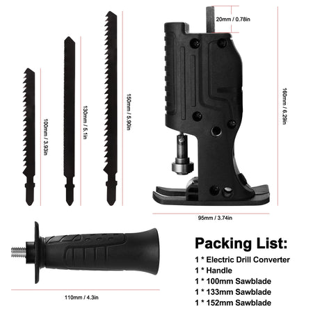 Transformirajte svojo običajno električno vrtalno orodje v vsestransko rezalno orodje z adapterjem za električno vrtalno orodje na reciprocating žago za žago meterk. Ta pameten dodatek spremeni vašo vrtalko v učinkovito žago v nekaj sekundah, kar ponuja stroškovno učinkovito rešitev za lesarska in obnovitvena dela. Združljiv je z rezili premera 100mm, 133mm in 152mm, kar širi vaše možnosti rezanja brez potrebe po nakupu posebne električne žage.