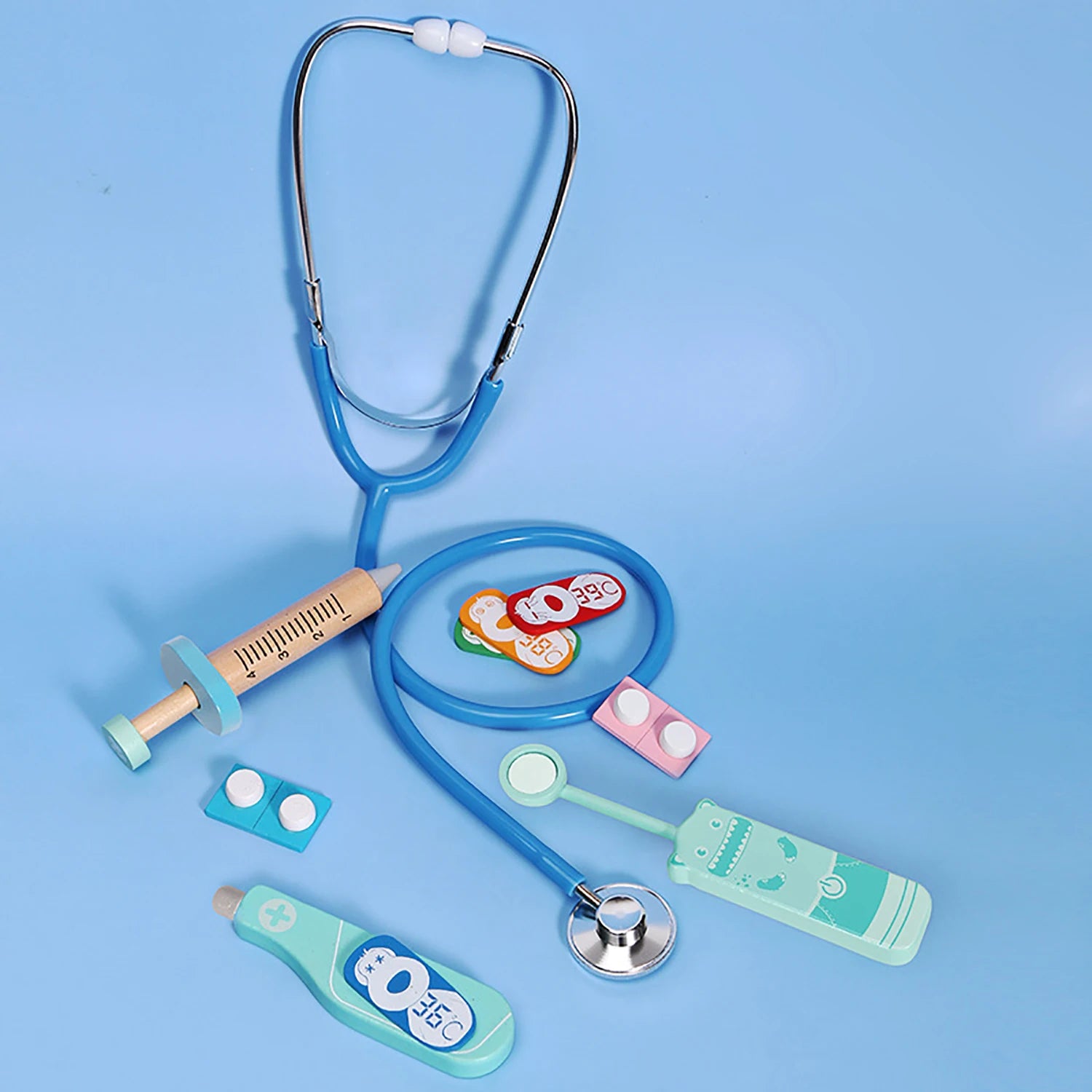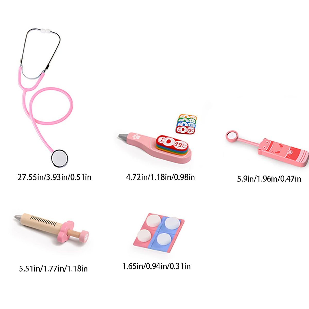 Odlično za domišljijsko igro in zgodnje raziskovanje znanosti, naš Leseni Medicinski Igrača za Otroke Pet Delni Zdravniški Komplet združuje varnost, trajnost in zabavo iz resničnega sveta. Izdelan iz trdnega lesa, ta petdelni zdravniški komplet vabi otroke, da igrajo skrbne vloge, se učijo osnovnih zdravstvenih konceptov in gradijo samozavest skozi domišljijske preglede in prijazne zdravnik-pacient scenarije.