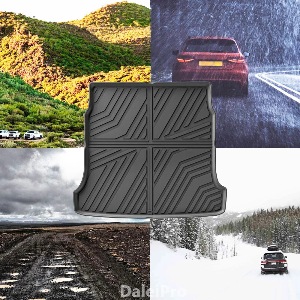 - Zaščita pred vsemi vremenskimi vplivi: Ščitite svoj prtljažni prostor pred dežjem, blatom, snegom in razlitji s preprogami, zasnovanimi za trdo vsakodnevno uporabo.