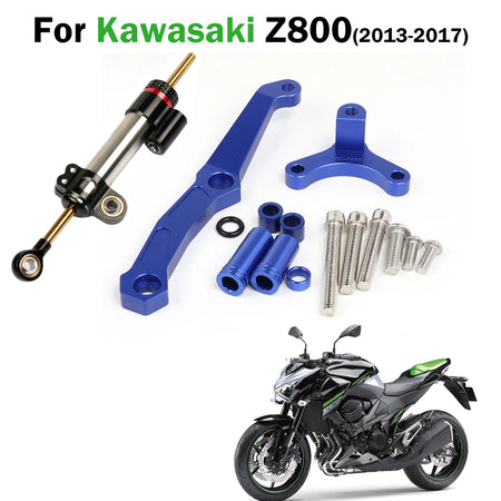Kawasaki Z800 Steering Damper Kit With Aluminum Adjustable Bracket Stabilizes Handlebar For 2015-2017