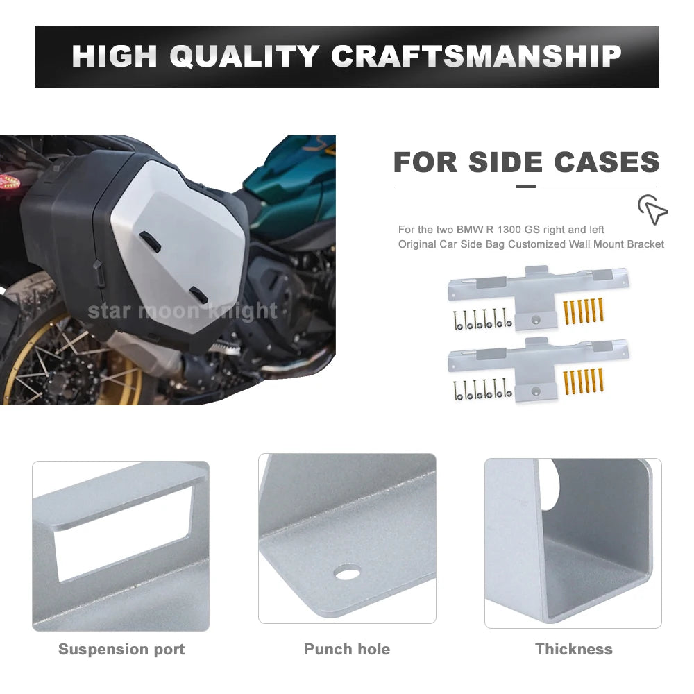 Predstavljamo BMW R 1300 GS stensko nosilec za Vario prtljažni kovček — rešitev za varčevanje s prostorom, zasnovana za voznike, ki cenijo varno in organizirano opremo. Po meri izdelan za držanje dveh originalnih Vario škatel na levi in desni strani BMW R 1300 GS, ta stenski nosilec drži obsežno prtljago stran od tal in stran od vlage, prahu ter nenamernih udarcev.