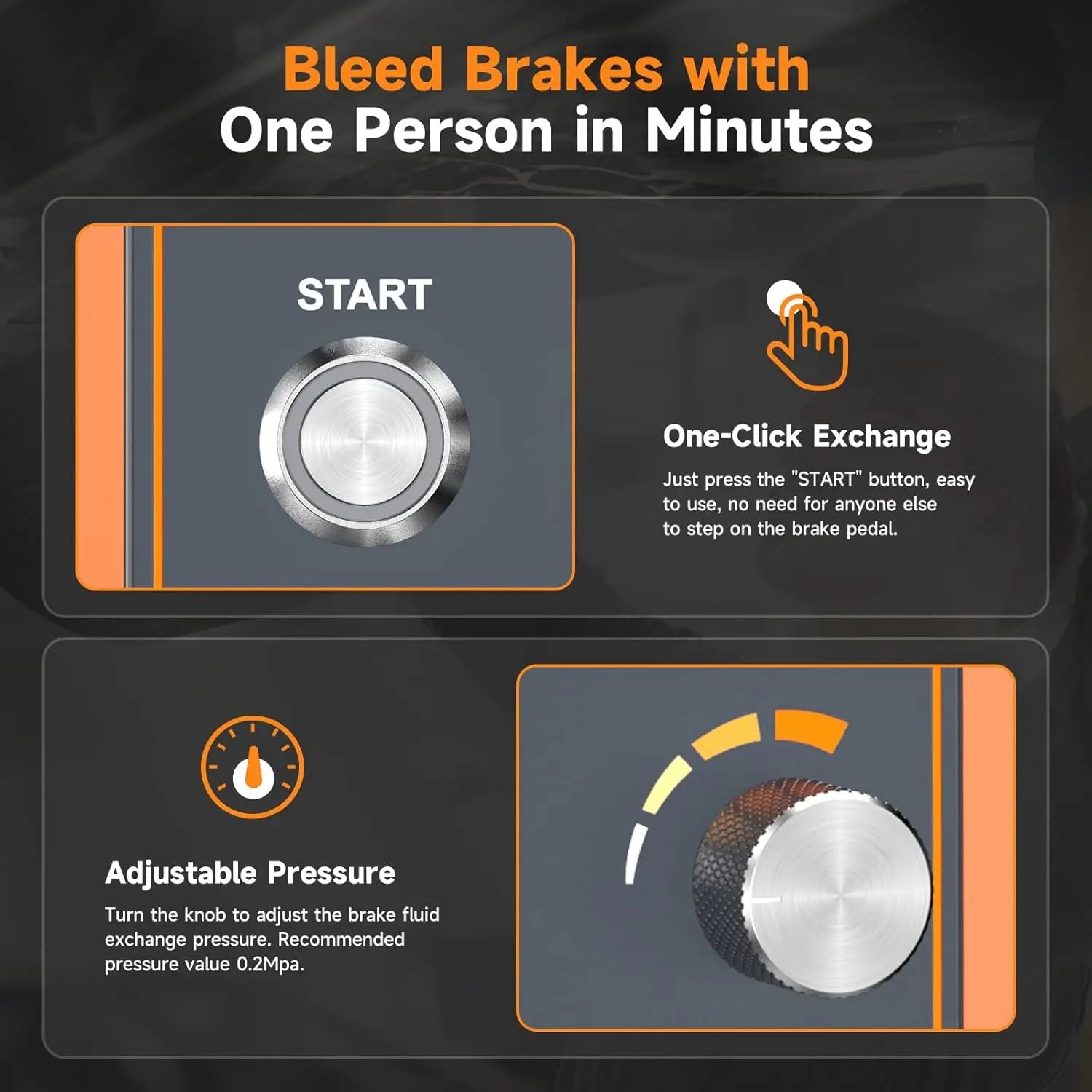 - Upravljanje z eno osebo: hitro in varno odvajanje zavor brez pomočnika, kar vam prihrani čas v zaposlenih delavnicah ali doma.