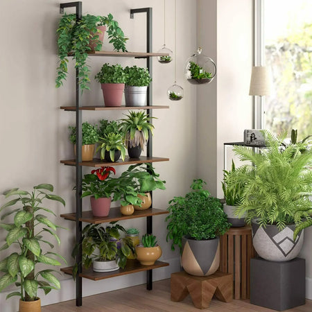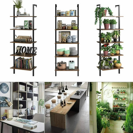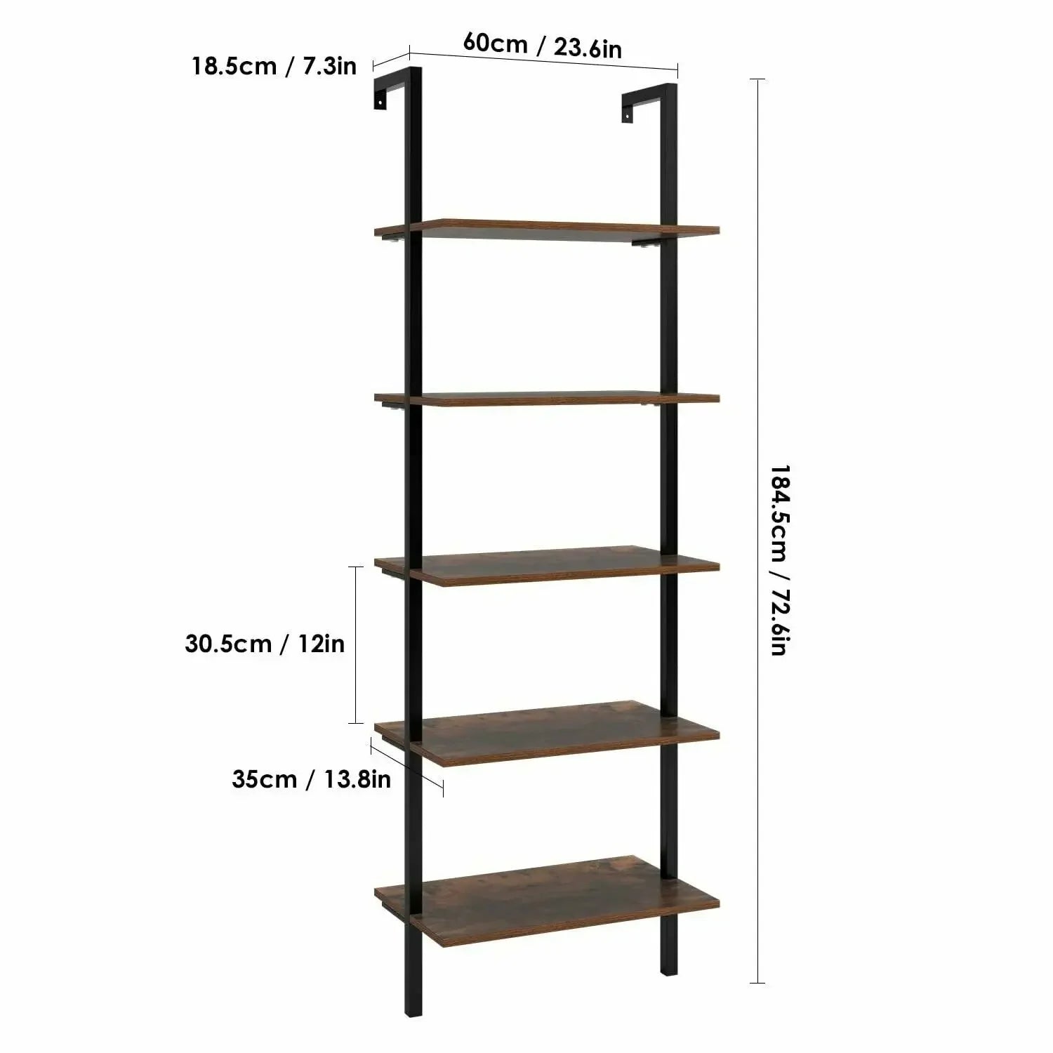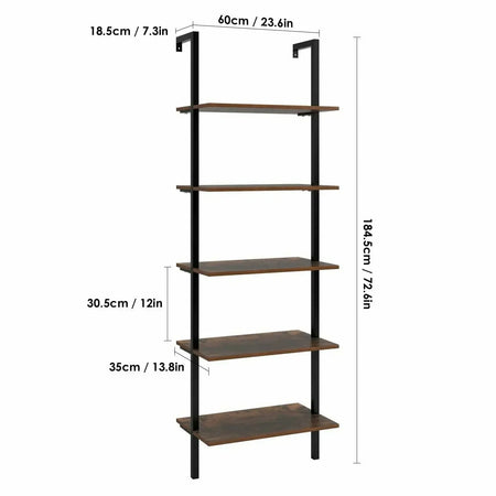 Homfa 5 Tier Industrial Ladder Shelf Bookcase 60x35x185cm
