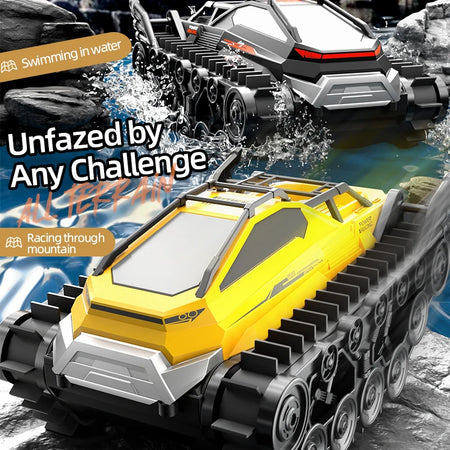 Spoznajte JJRC Q183 amfibijski RC avto s tankovskimi trakovi—trpežna igrača za terensko vožnjo, zasnovana za premagovanje kopnega, vode in vsega vmes. Njegovo trdno plastično telo se vozi na tankovskih trakih za izjemno oprijemljivost po blatu, pesku in plitvi vodi, kar vam omogoča vožnjo tam, kjer tradicionalni RC avti ne morejo.
