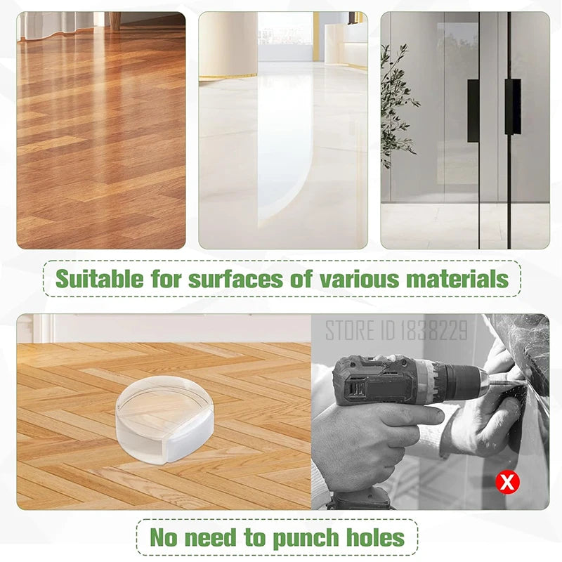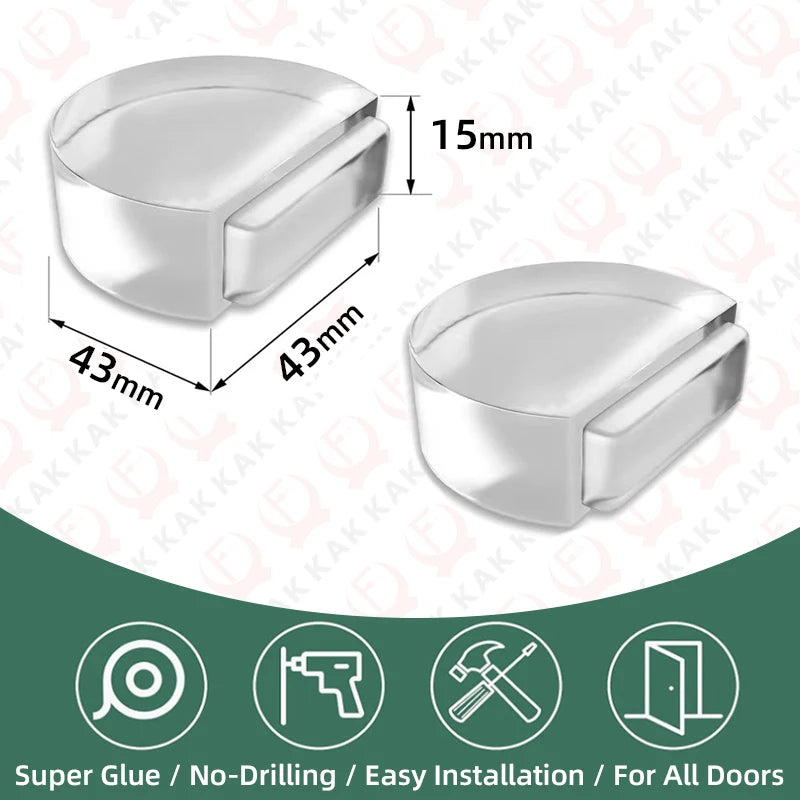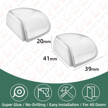 Zasnovani za več površin, delujejo na lesenih tleh, ploščatih stenah, kovinskih vratih, steklenih vratih in še več. Prosojna bela barva se zlije z večino notranjosti, medtem ko kompaktne dimenzije (velikosti Tip A, Tip B in Tip C) omogočajo izbiro pravega prileganja za vsak razmak vrat. Ta komplet s 2 kosi je idealen za domove, stanovanja, pisarne in najemniške prostore, kjer je zaščita sten pomembna.
