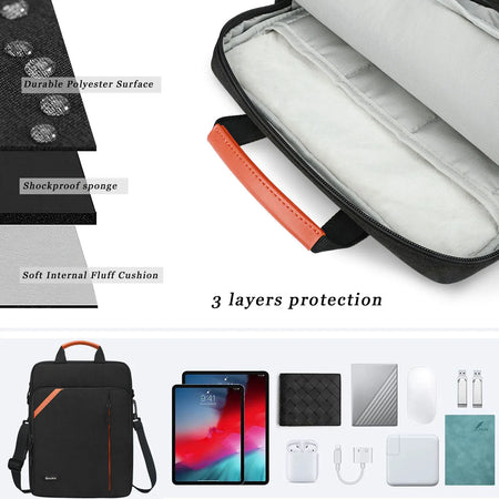 Torba za prenosni računalnik z 360-stopinjskim varovanjem za 13.3-14.1 palčni MacBook Pro, trpežna poliester, mehak flis notranjost