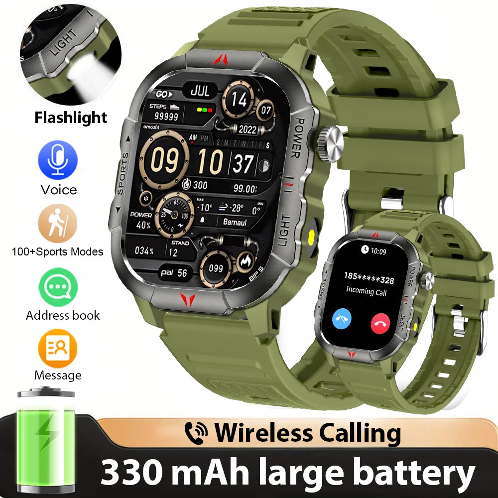 Spoznajte LAXASFIT 2025 Moška Zunanja Pametna Ura z LED svetilko — trden spremljevalec, zasnovan za resne raziskovalce. Z velikim 2.01 palčnim (5.08 cm) HD zaslonom in trdno ohišjem iz zlitine, je ta pametna ura zasnovana za obvladovanje zunanjih pogojev, hkrati pa nudi jasne, enostavno berljive informacije na prvi pogled. Konstrukcija združuje trden plastični okvir s zaščitnim kovinskim obodom, kar ponuja lahko, a trpežno izkušnjo za pohodništvo, kampiranje in vsakodnevne pustolovščine. Ta model, ki izvira iz celinske Kitajske, je zasnovan za moške, ki zahtevajo zanesljivost in zmogljivost na vsakem pohodu ali mestnem izletu.