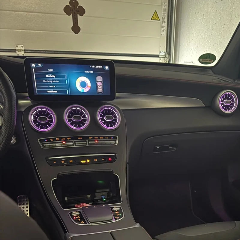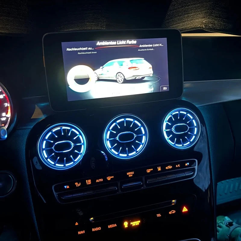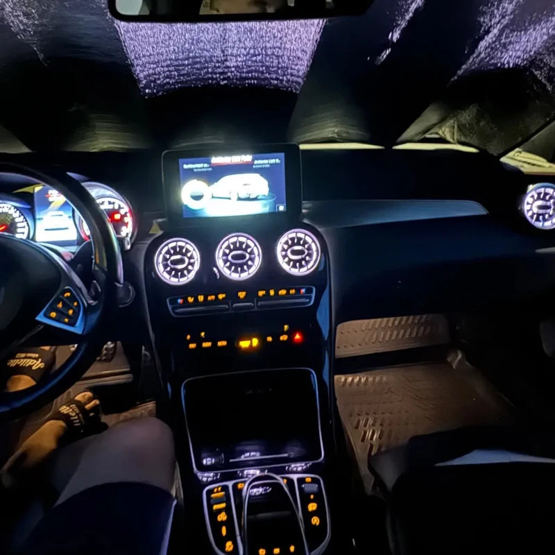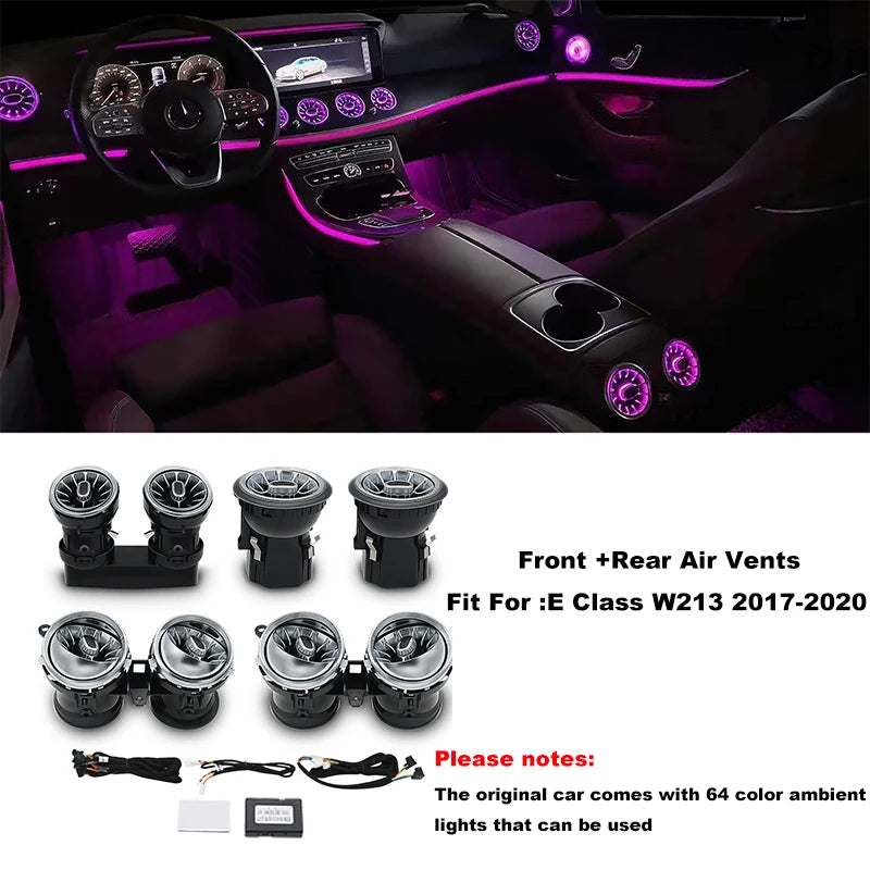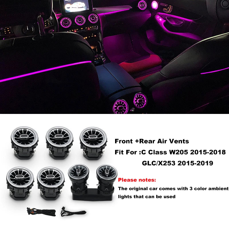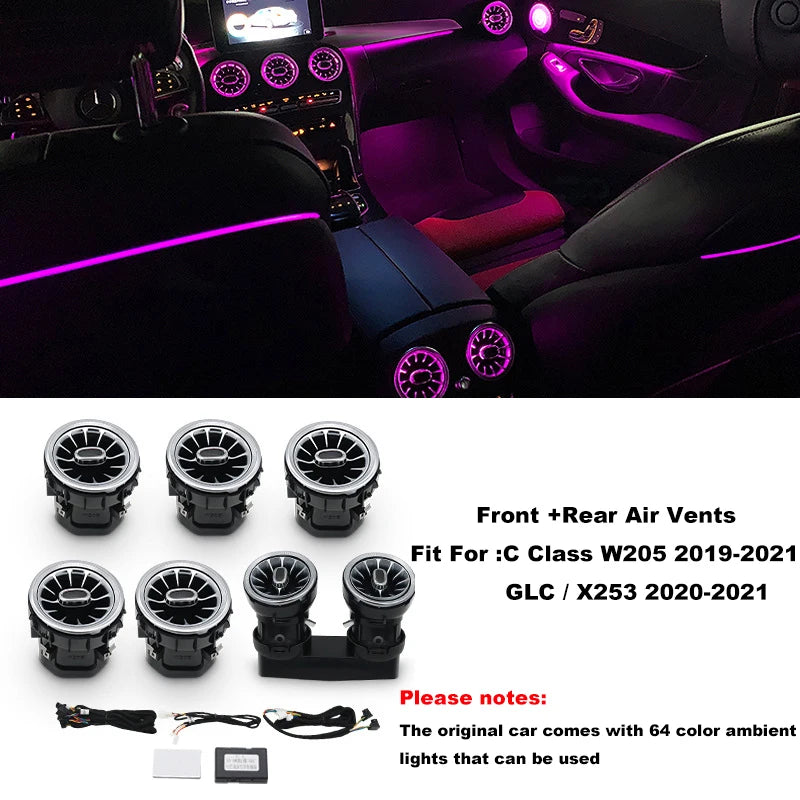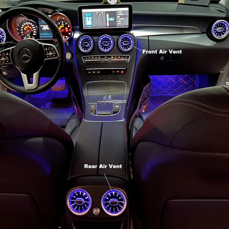 Izboljšajte notranjost svojega Mercedes-Benz z Mercedes-Benz C W205 LED izhodno turbinsko šobo ambientne svetlobe ABS trakovi. Zasnovani za natančno združljivost s C-Class W205 (2015-2018 in 2019-2021) ter E-Class W213 (2017-2020), ti ABS trakovi nadomestijo osrednjo oblogo nadzornega sedeža, da zagotovijo brezšavno, integrirano izkušnjo ambientne svetlobe. Barvni izhod samodejno odraža ambientni svetlobni sistem vašega avtomobila, ne glede na to, ali vaš model uporablja 3-barvne ambientne luči ali obsežnejšo 64-barvno nastavitev, kar zagotavlja usklajen ambient v kabini, ki deluje tovarniško sveže.