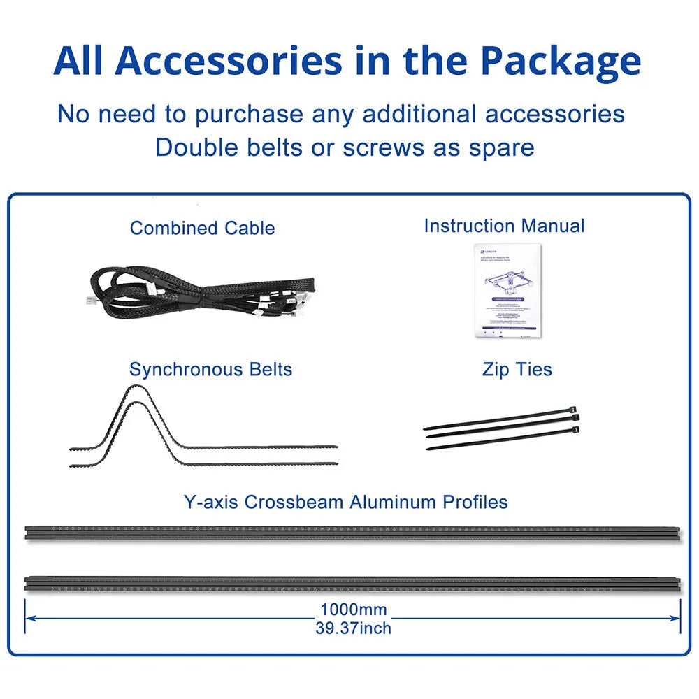 Komplet uporablja trden, aluminijast profil Y-osnega prečnika, da ohrani togost in natančno gibanje, kar zagotavlja dosledne rezultate po celotnem razširjenem območju. To je praktična nadgradnja za uporabnike, ki želijo povečati proizvodnjo brez žrtvovanja natančnosti. Vključuje vse, kar potrebujete za hitro, zanesljivo namestitev in takojšnje izboljšave delovnega toka.