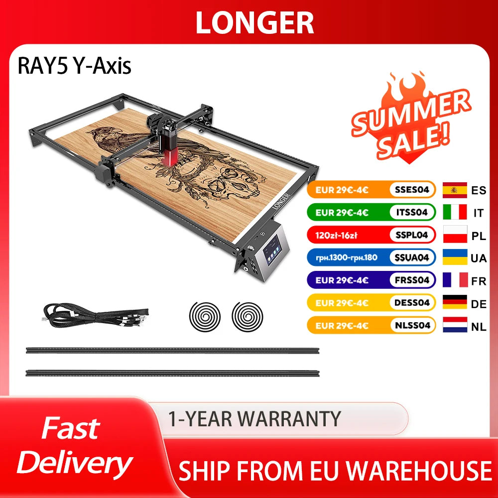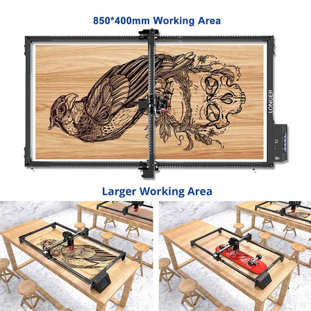 Razširite zmogljivosti vašega LONGER Ray5 laserskega gravirnika v nekaj minutah z Ray5 Laser Engraver Y-Axis Extension Kit. Ta preprosta nadgradnja zamenja Y os in dramatično poveča delovno območje, kar omogoča velike formate in hitrejšo serijsko proizvodnjo. Za 5W in 10W Ray5 enote boste pridobili razširjeno delovno območje od 400x400 mm do 400x850 mm, medtem ko se 20W modeli razširijo od 375x375 mm do 375x825 mm. Oblikovanje poudarja stabilnost, tako da lahko gravirate in režete s samozavestjo, tudi pri visokih hitrostih in na večjih površinah. Popoln za plakate, table in projekte z veliko količino, vam pomaga učinkoviteje obvladovati večje naloge.