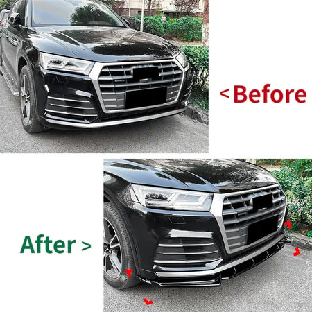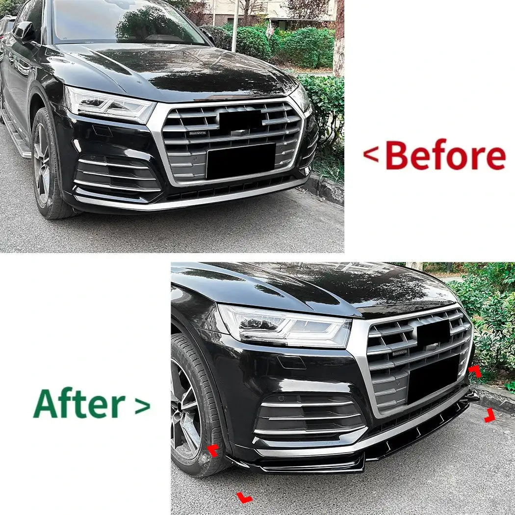 Izboljšajte svoj Audi Q5/SQ5 FY S-Line s tem nizkim splitter difuzorjem spojler lip kitom. Izdelan iz visokokakovostne ABS plastike, ta spojler na sprednjem odbijaču dodaja agresiven, dirkaško navdihnjen videz, hkrati pa pomaga upravljati z zrakom za izboljšano aerodinamiko. Oblika za neposredno zamenjavo zagotavlja brezhibno, tovarniško prileganje na modelih Audi Q5/SQ5 iz let 2018, 2019 in 2020, kar zagotavlja usklajen videz v sijajni črni barvi, ki se upira bledenju in se zlije s stilom vašega vozila.