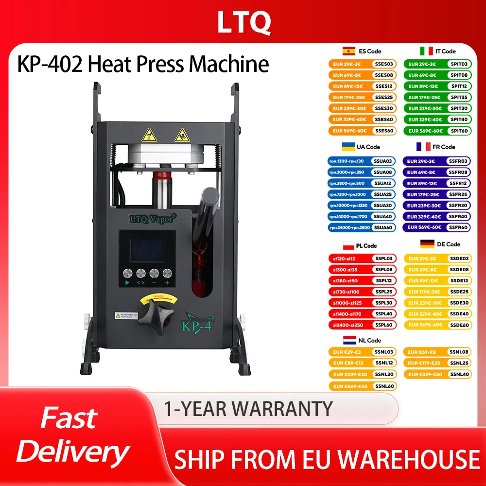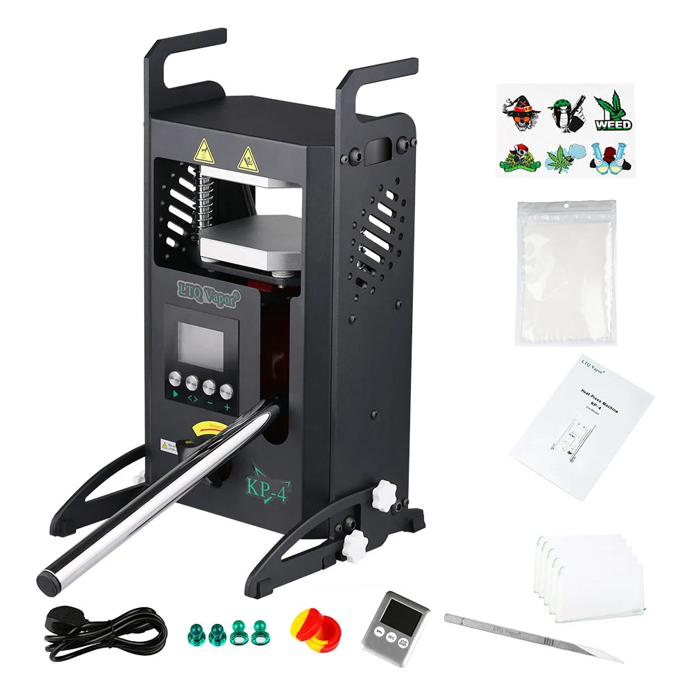 Spoznajte LTQ VAPOR KP-402 4-tonski dvojni ploščni toplotni stiskalnik — kompakten, močan pripomoček za natančno, visoko donosno stiskanje. Zgrajen z dvema grelnima ploščama iz zlitine letalskega aluminija in ploščami debeline 18 mm, da se zmanjša deformacija, zagotavlja enakomerno toploto in stalni pritisk za ekstrakcijo rosin in majhne serije obrti. Intuitivna LED kontrolna plošča vam omogoča prilagajanje temperature od 0 do 150°C in časa od 0 do 999 sekund s jasnimi povratnimi informacijami. S kompatibilnostjo 90–260V in močjo od 300 do 800W (odvisno od napetosti) se ta enota prilagodi vaši regiji. Njegova pritiskovna sila 4 tone, dolga ročica za enostavno delovanje in kompakten odtis (192 × 145 × 370 mm) ohranjata vašo delovno površino učinkovito. Stroj tehta približno 13,5 kg; teža paketa je 14,5 kg. Vsa elektronska in mehanska oprema, naprave in stroji, ki jih prodaja InterCyprus državam EU, so CE certificirani in imajo dvoleten garancijski rok. Kakovostne in zaupanja vredne storitve od leta 2002 na intercyprus.com.