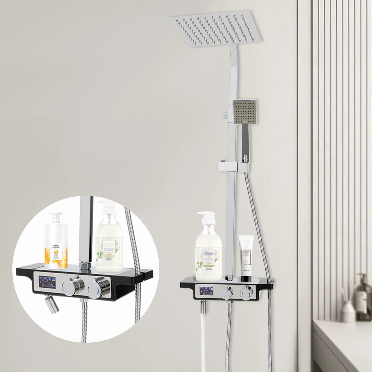 Moderna tuš kabina na steni – Air Boost in uravnotežen tok je eleganten srebrn tuš sistem, zasnovan za zagotavljanje osvežujočega pršenja z zrakom in uravnoteženim tokom vode. Idealna za moderne kopalnice, združuje trdno konstrukcijo iz medenine z ABS in silikonskimi komponentami za zanesljivo delovanje in enostavno vzdrževanje.